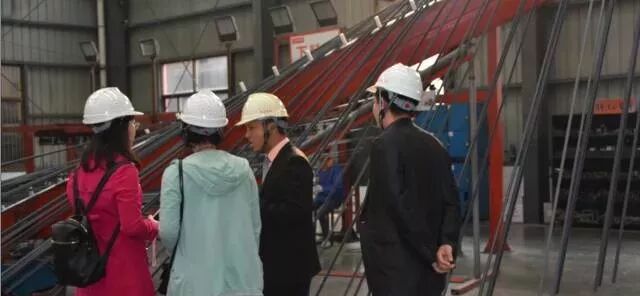 ▲图为江苏伟业铝材副总经理廖望生为代表们讲解生产线及产品